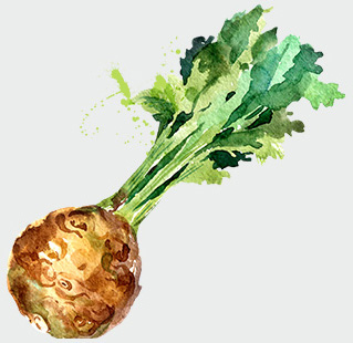 Knollensellerie ist ein echtes Kraftpaket und wird doch oft unterschätzt. Dabei gehört er zusammen mit Karotten und Lauch zum traditionellen Suppengemüse. Sellerie ist selten der Star eines Gerichts, aber oft als Geschmackgeber mit dabei.